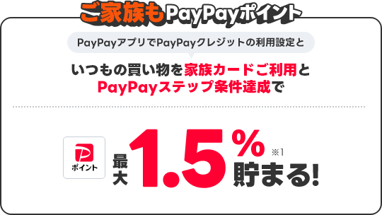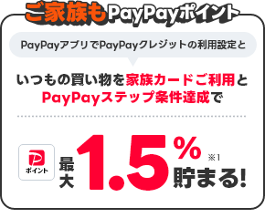 家族カードのご利用の場合、家族カードをPayPayアプリに登録すると、家族会員への付与。詳しくはこちら