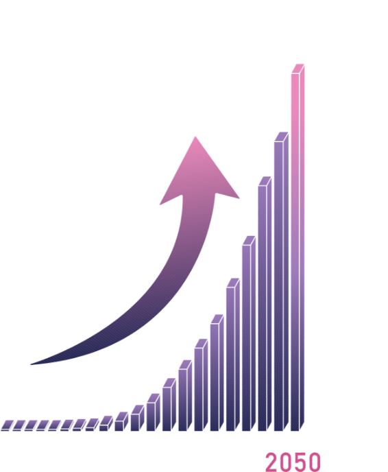 データ量が膨大にこの先の未来、データ処理に必要な計算能力は爆発的に増え、2050年には2,000倍以上になると予想されているほどです。あらゆるモノがインターネットにつながり、世界中でAIが用いられる社会では、膨大なデータをリアルタイムで高速処理する必要があります。しかし、現在の通信インフラのままではその未来に対応することはできません。進化を続けるAIと共存する未来を実現するためには、その進化を支えることができる、より強力な「次世代社会インフラ」が必要なのです。