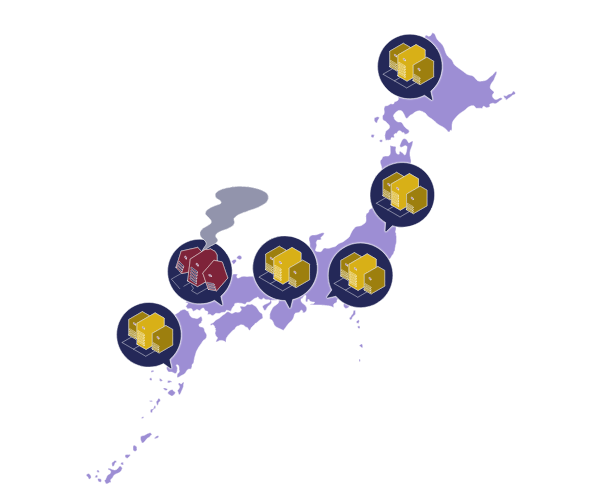 次世代社会インフラでは、たとえ大都市が大きな災害に見舞われても、データ処理などの機能が失われることはありません。現在は東京・大阪など大都市にしか設置されていないデータセンターを地方に分散させることで、いざという時でも各地域の生活を維持することができます。データ処理量が膨大に増えるAI共存社会においても、各地のデータセンターが生活者一人一人に日常の安心を届けます。