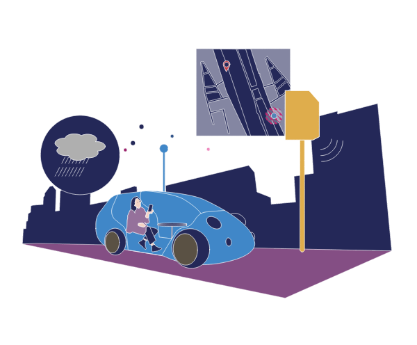 次世代社会インフラでは、超未来的な移動が実現可能に。道路自体が車や街とつながれば、車が検知できない死角の情報を道路から発信し、急に子どもが飛び出してきても車は自動で停止できる。高速道路を走る車両の状況を連携して渋滞がゼロになる。そんな安心安全な交通社会をつくれる可能性を秘めています。さらに、通信とAIの貢献により完全自動運転の社会が実現されると、車での移動中に映画鑑賞を楽しんだり、テレワークをしたり、移動の概念すら変わっていくかもしれません。移動が変わることで、毎日の生活も劇的に変化していくことでしょう。