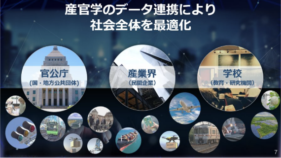 AI共存社会の基盤となる技術。産学官で持つ膨大なデータを安全に連携し、各地に分散されたシステムでの処理が自動的に最適化されることで、リアルタイムなニーズに応えます。高速道路を走る自動運転車のデータを集約して計算することで、事故や渋滞をなくしたり、ビル内や周辺の人流データを収集して連携することで、建物自体が自律的に省エネ化を実行しながら人にとって快適な空間を整備するなど、より暮らしやすい社会環境が実現できます。