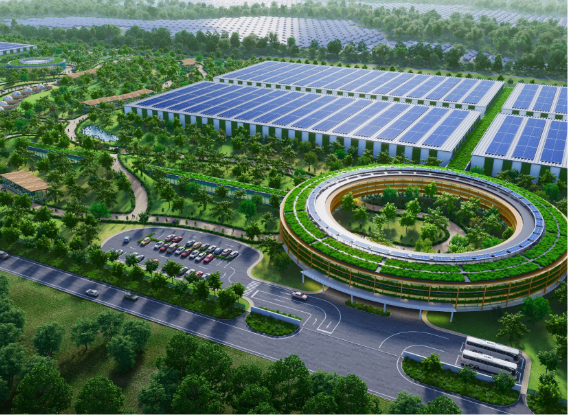 都市圏に集中する電力消費を地方に分散し、地産地消型で再生可能エネルギーを100%利用するグリーンデータセンター。さらに水素発電や蓄電池などの環境負荷が少ないエネルギーを活用することで安定した供給を実現します。