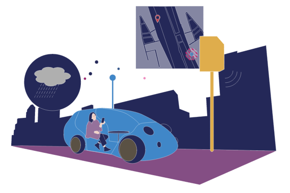 Next-generation social infrastructure can make ultra-futuristic forms of transportation a reality. If the road itself is able to connect vehicles with their surroundings, it can inform vehicles about their blind spots or cause them to stop automatically if a child runs out onto the street. Congestion will be eliminated by coordinating the movements of vehicles on highways. The potential now exists to create such a safe and reliable transportation infrastructure. Once fully autonomous driving becomes a practical reality through the use of communications and AI, it may well transform the very concept of travel, allowing people to telework or watch videos while being driven in their vehicles. JChanges in transportation could bring dramatic changes in people's daily lives.