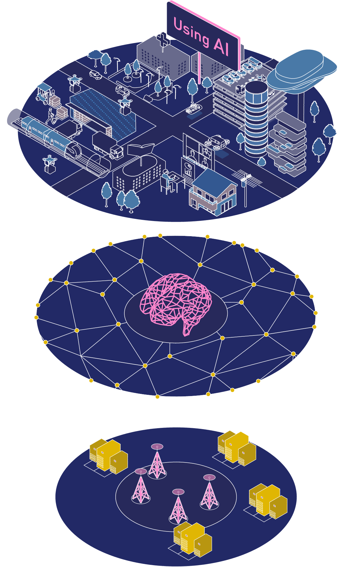 where AI plays an integral roleNext-generation social infrastructure represents a transformation in the very structure of existing telecommunications, delivering an entirely new form of digital infrastructure that leverages the power of AI through dramatic improvements in computational capacity. Whereas data processing right now is largely centralized in urban locations, processing speeds will be increased enormously by adopting a wider geographical spread. Locating in regions where renewable energy is available will also help society achieve decarbonization. These new platforms with enhanced computational capacity will expand the potential for AI and help to bring about a sustainable society.