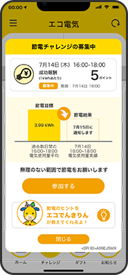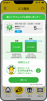 アプリにて募集された節電チャレンジ・昼とくチャレンジに