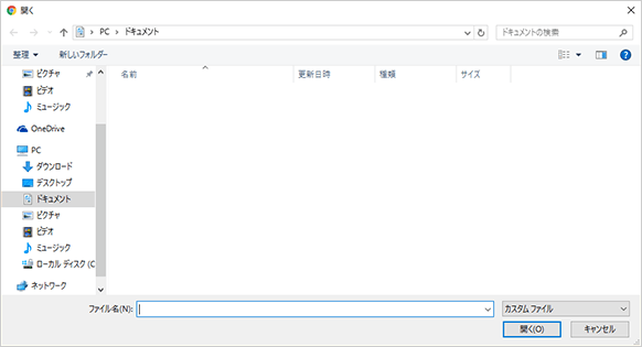「ファイルを選択」ボタンをクリックすると、ファイルの読み込み画面が表示されますので、スキャン、もしくは撮影した書類の画像データを指定して、「開く」ボタンをクリックします。(Windows10の場合)