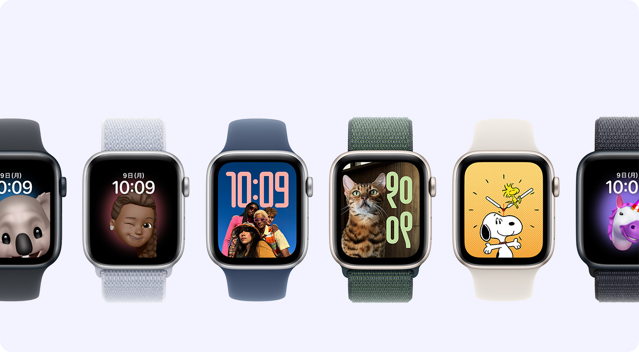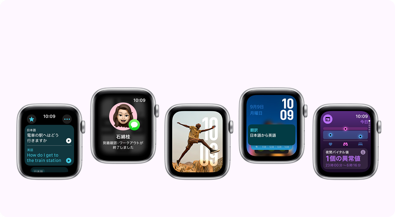 - 利用できる機能:機能は変更される場合があります。地域や言語によっては一部の機能、アプリケーション、サービスを利用できない場合があります。詳しくはapple.com/jp/watchos/feature-availabilityをご覧ください。