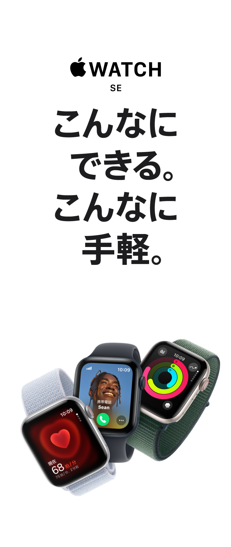 - 不規則な心拍の通知:不規則な心拍の通知機能を使用するには、watchOSおよびiOSの最新バージョンが必要です。この機能は、22歳未満の方による使用を目的とするものではありません。販売名:Appleの不規則な心拍の通知プログラム 管理医療機器販売業者等:Apple Japan合同会社(住所:東京都港区六本木6丁目10番1号六本木ヒルズ お問い合わせ:0120-277-535)