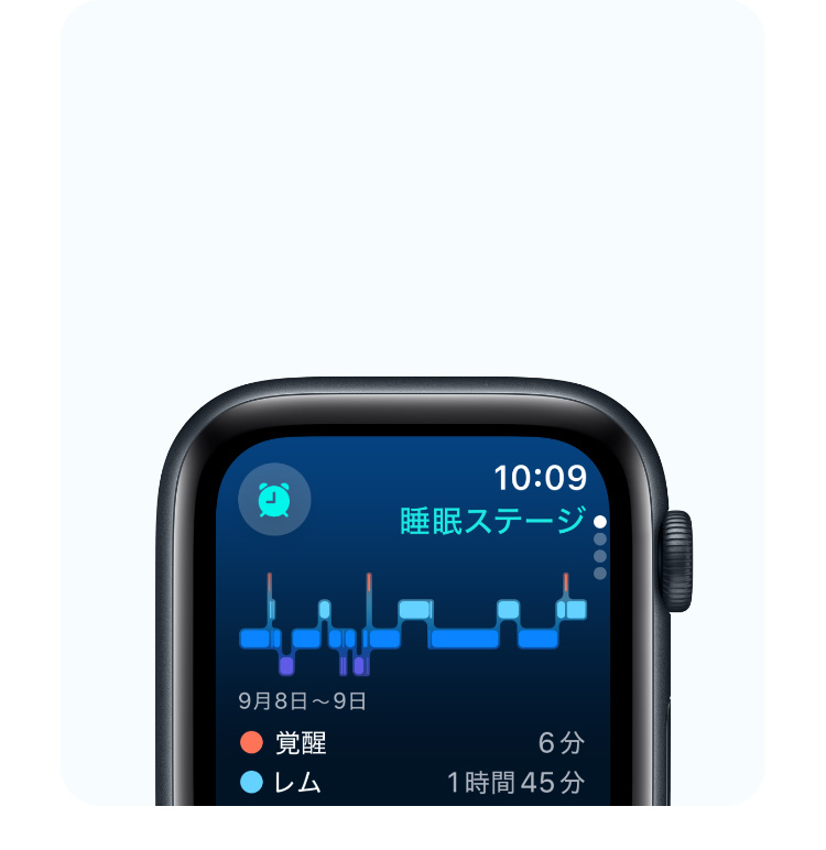 - 睡眠時無呼吸の通知:睡眠時無呼吸の通知機能はApple Watch Series 9以降およびApple Watch Ultra 2で利用できます。この機能は、睡眠時無呼吸と診断されたことがない18歳以上の方による使用を目的とし、中等度から重度の睡眠時無呼吸を示唆する兆候を検出します。販売名:Appleの睡眠時無呼吸の兆候の通知プログラム。管理医療機器販売業者等:Apple Japan合同会社(東京都港区六本木6丁目10番1号六本木ヒルズ 0120-277-535)
