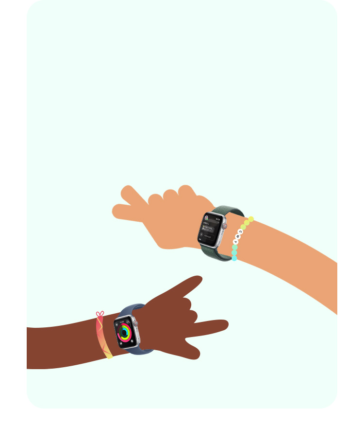 - 到着確認:到着確認機能を利用するには、送信側にwatchOS 11以降、受信側にiOS 17以降が必要です。位置情報の共有機能は韓国では利用できません。他の地域でも現地の法令により利用できない場合があります。