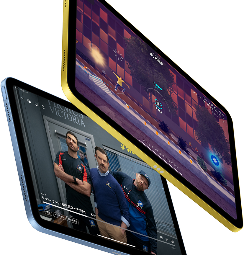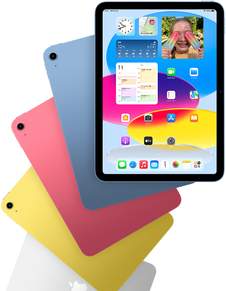 • ストレージと容量:実際にフォーマットされた容量は仕様を下回り、多くの要素によって変わります。 ストレージ容量はソフトウェアのバージョン、設定、iPad のモデルによって変わります。 容量を示す単位は1GB=10億バイト、1TB=1兆バイトです。「ストレージの最小容量が2倍」は、一世代前のモデルとの比較にもとづきます。