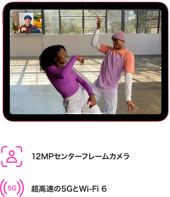 • 携帯電話/ワイヤレス通信方式:データプランが必要です。 5Gは特定の国の特定の通信事業者で利用できます。 速度は使用する場所の条件と通信事業者によって変わります。 5G対応の詳細については通信事業者にお問い合わせください。 apple.com/jp/ipad/cellularもあわせてご覧ください。