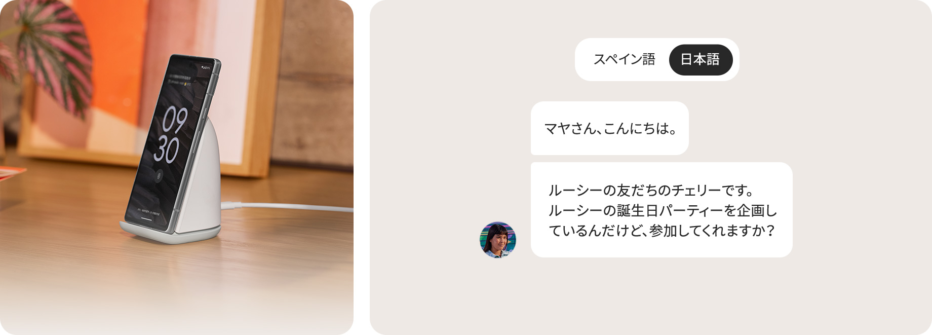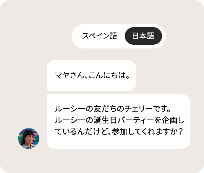 リアルタイム翻訳を使えば、48 の言語で実際に会話したり、リアルタイムで