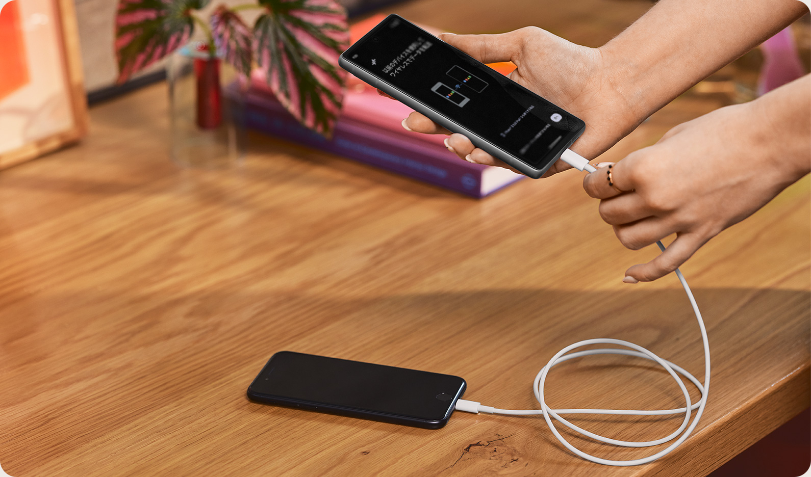 充電中のスマートフォンは、