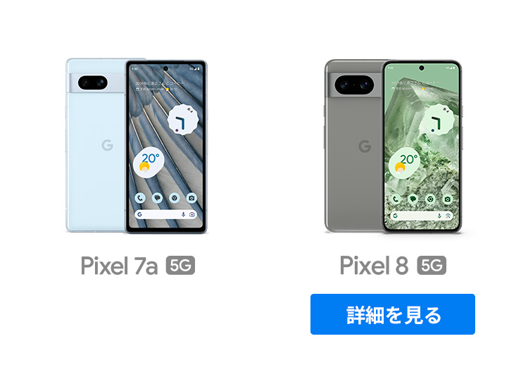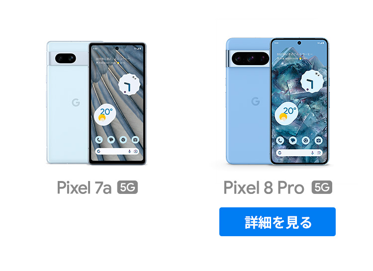 1 通話スクリーニングは言語や国によって利用できない場合があります。詳しくは g.co/help/callscreen をご覧ください。Direct My Call は米国内で英語のみで利用でき、フリーダイヤルにのみ対応します。また、お店やサービスによっては利用できないことがあります。 2 サードパーティのグローバル調査企業によるレポートに基づいています。評価された機能は、一部の国ではご利用いただけない場合があります。詳しくは、goo.gle/mobilesecurity2022 をご覧ください。 3「24 時間」について: バッテリー駆動時間は、Google Pixel ユーザーのバッテリー使用プロファイル中央値を使用して、通話、データ通信、待受やその他の機能の使用などを組み合わせたテストに基づく推定値です。テスト中の平均バッテリー駆動時間はおよそ 31 時間です。バッテリーのテストは、携帯通信会社大手 1 社のネットワークで実施しました。「最大 72 時間」について: バッテリー駆動時間は、Google Pixel ユーザーのバッテリー使用プロファイル中央値を使用して、通話、データ通信、待受や、(5G 接続を含むさまざまな機能が無効になる)スーパー バッテリー セーバー モードでもデフォルトでオンになっているその他一部の機能を組み合わせたテストに基づく推定値です。バッテリーのテストは、携帯通信会社大手 1 社のネットワークで実施しました。「24 時間以上」と「最大 72 時間」のテストについて: バッテリー テストは、2022 年後期に米国カリフォルニア州で、生産開始前の初期設定状態のハードウェアおよびソフトウェアを用いて実施されました(ただし「最大 72 時間」のバッテリー駆動時間のテストに限り、スーパー バッテリー セーバー モードを有効にしました)。バッテリー駆動時間はさまざまな要因によって変動します。特定の機能を使用すると短くなります。実際のバッテリー駆動時間はこれより短くなる可能性があります。