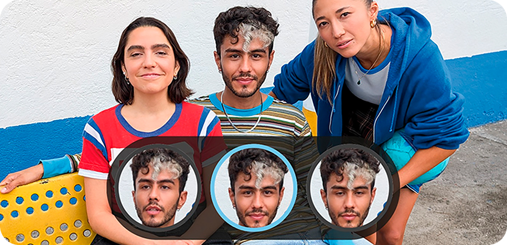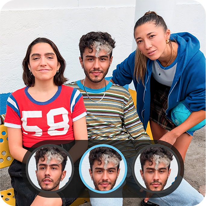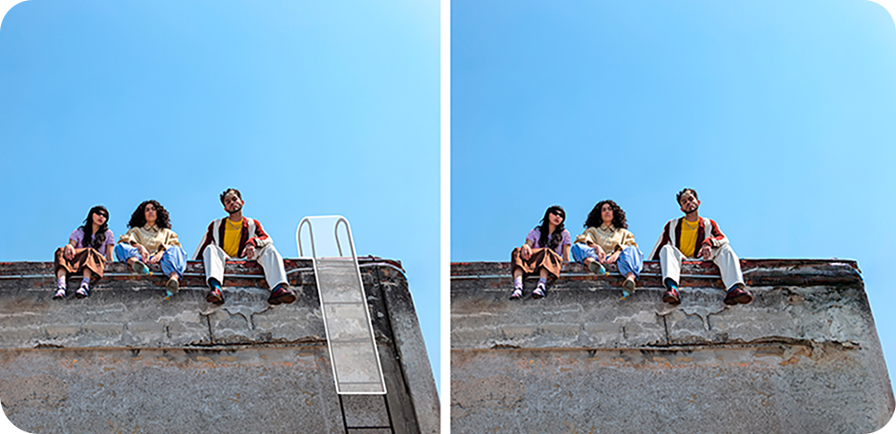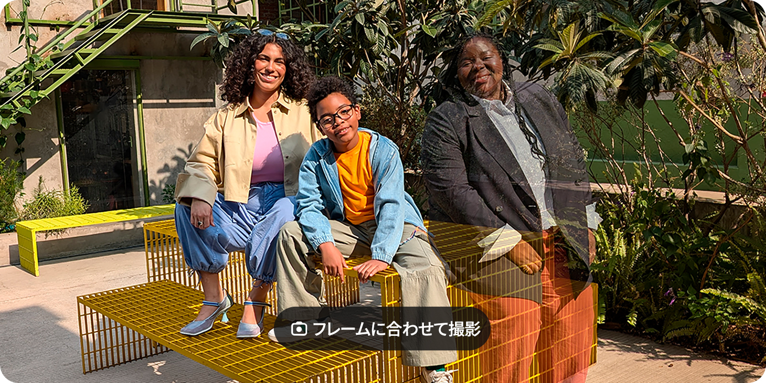 グループの写真を撮影したら、撮影者を交代してもう 1 枚。 Google Pixel がその 2 枚の写真を自然に合成してくれます1。