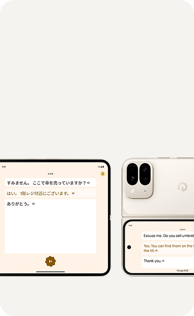 1 対応アプリが必要です。 2 言語や国によってはご利用いただけません。メディアやアプリによってはご利用いただけません。詳しくは、g.co/pixel/livetranslate をご覧ください。翻訳は即座に行われない場合があります。