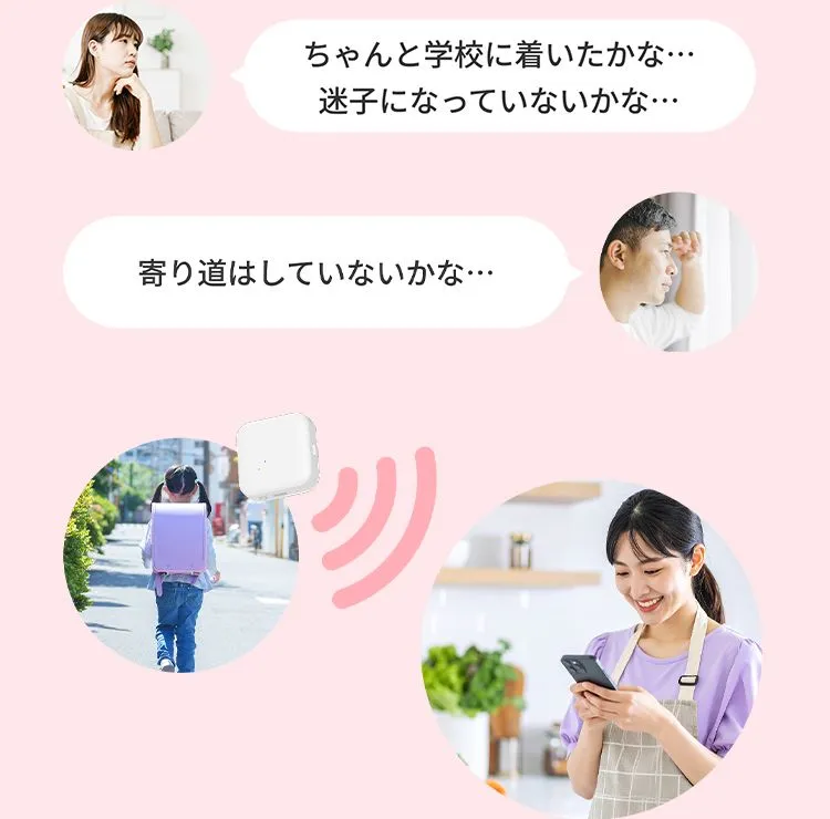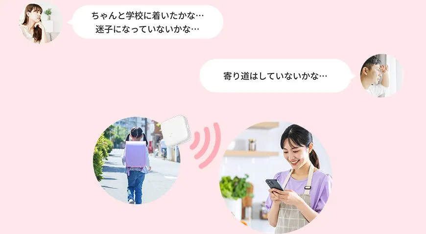 ご家族でボタンを押すルールを決めておけば、迎えに来てほしいとき、迷子になってしまったときに、ボタンひとつで連絡できます。