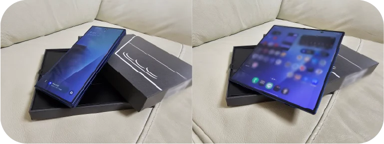 以前は、Galaxy Z Fold5を使っていましたが、Galaxy Z Fold7はかなり操作性も良く、サクサク動きます。バッテリーの持ちも良くなった気がします。デザインも薄くなり、カバー画面が大きくなって見やすくなりました。軽くなって持ち運びや操作自体もやり易くなって、とても良いです。もちろん、メインディスプレイはとても大きくて、人前で広げるとよく驚かれます。写真も変わらず綺麗に撮れます。かなりの拡大ができるので、その点もメリットです。とても満足しています。
