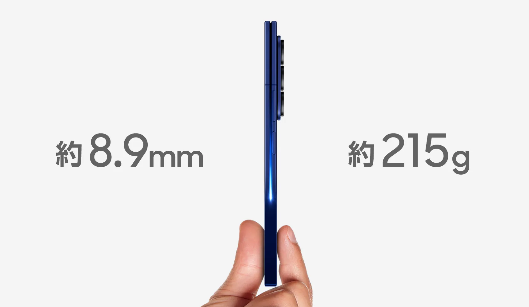 閉じたときの厚み約8.9mm、重さはわずか約215gと、