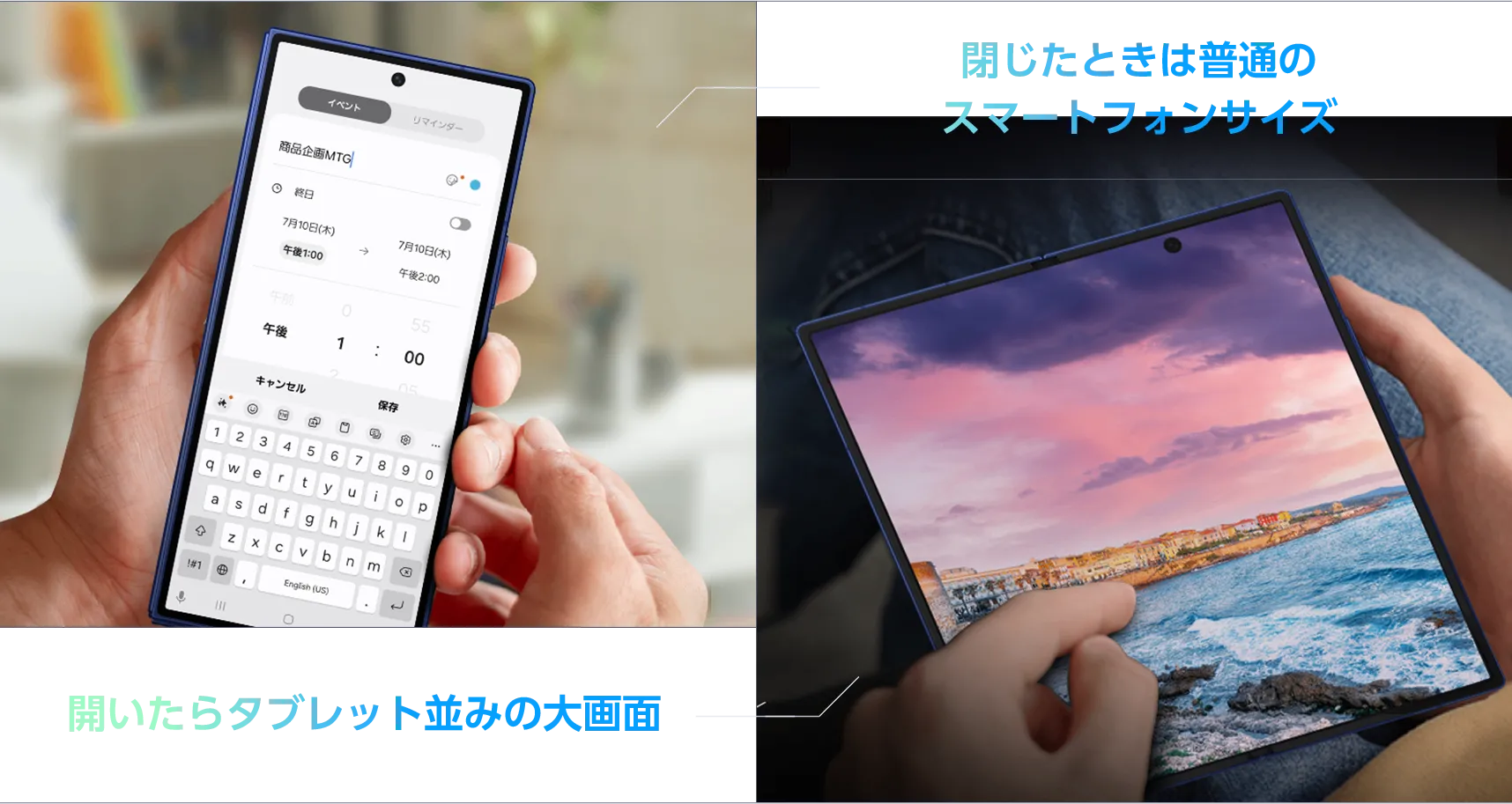 大きく表示され、高い操作性と視認性を実現。開けば約
