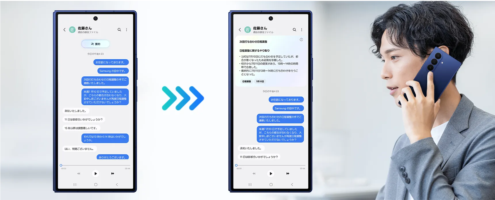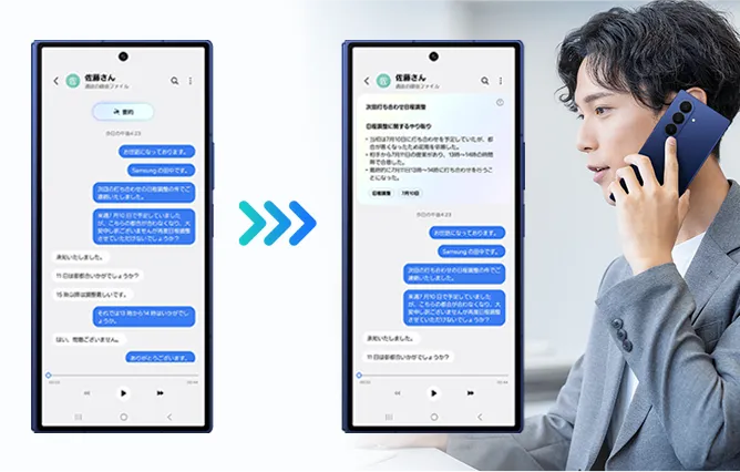 あれだけ話しても、内容は一目で把握。Galaxy AIが通話の内容を記録するだけではなく、