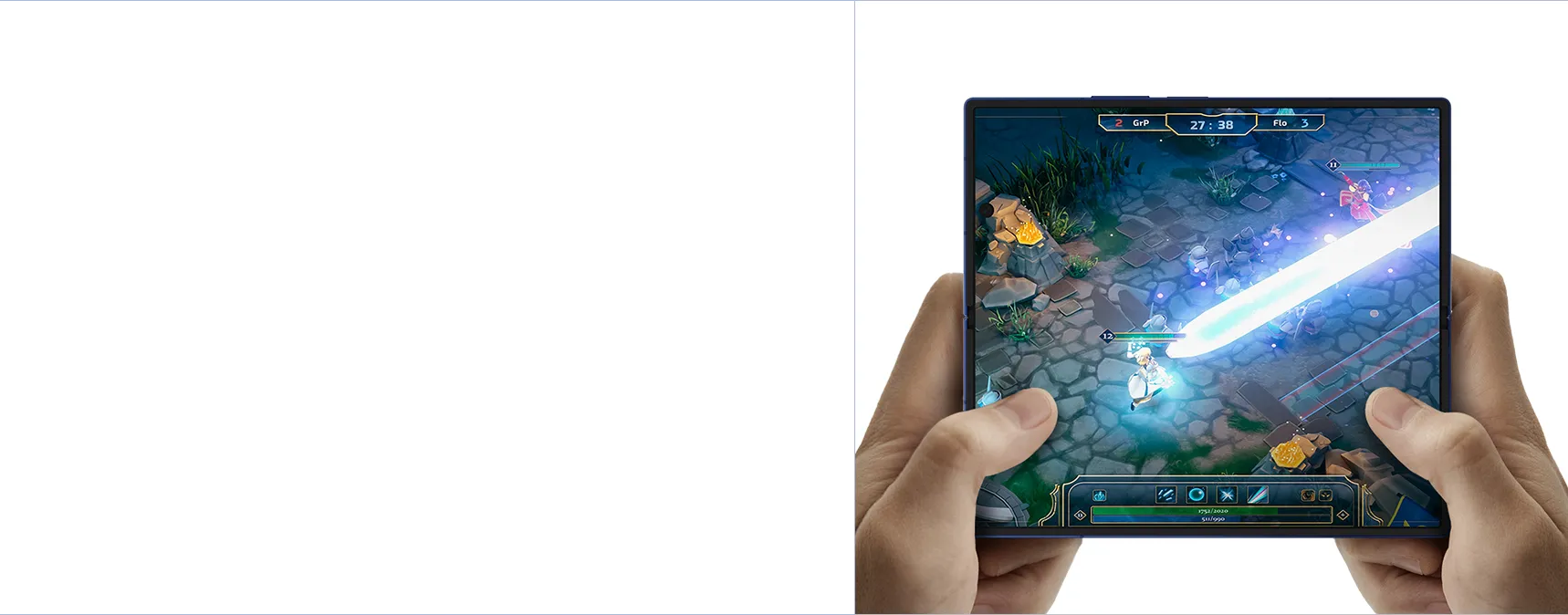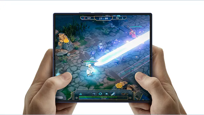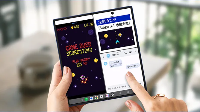 開けば約8.0インチの超大画面。端まで広がる全面ディスプレイでゲームやマルチタスク*2を