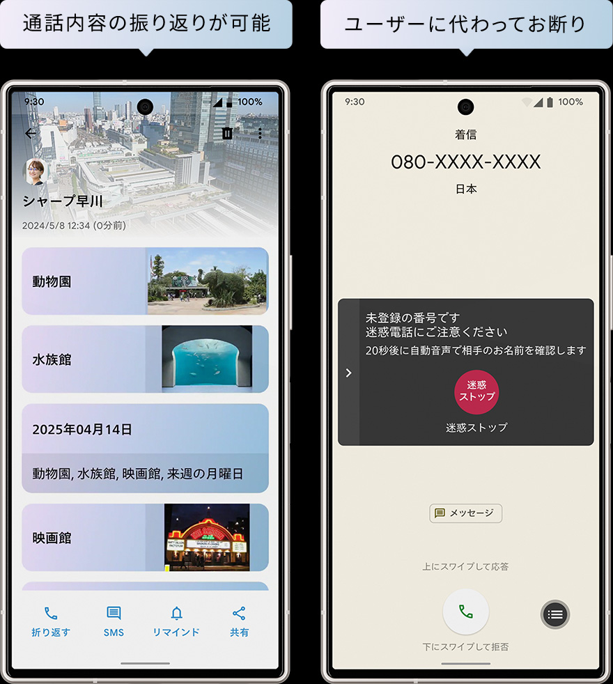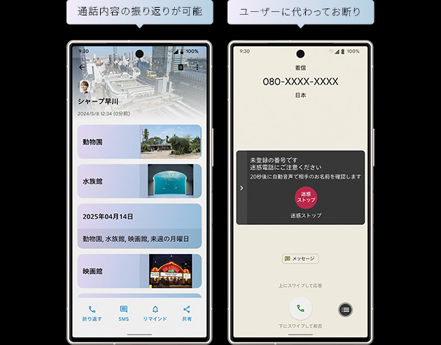 AIが通話中に出てきたキーワードやスケジュールを自動でメモしてハイライト表示してくれるので、会話に専念でき、通話内容の振り返りもできます※7。