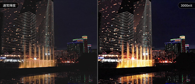 ピーク輝度3,000nitのディスプレイなので、階調豊かにくっきり