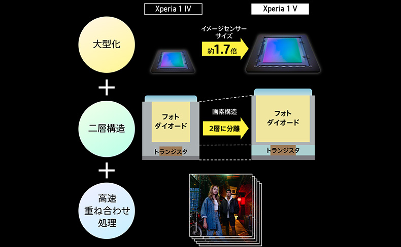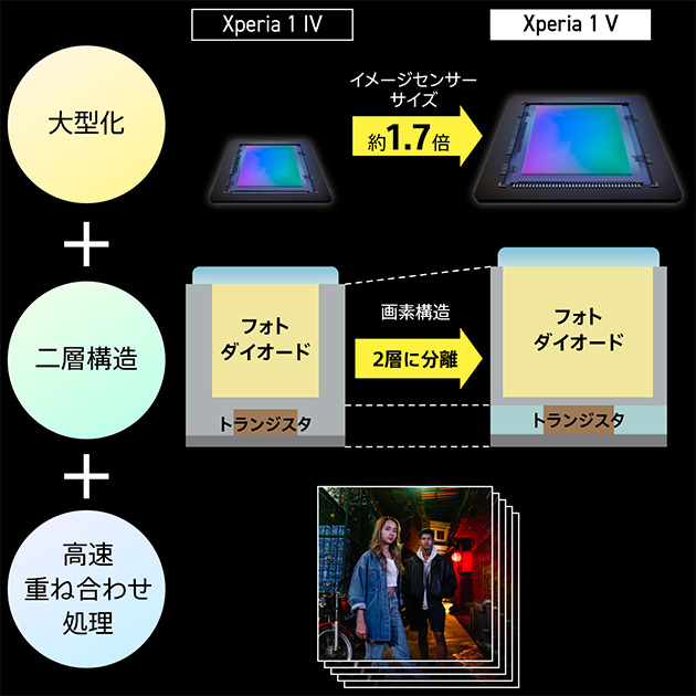 Xperia 1 IVの広角レンズに搭載されているイメージセンサーとの対比。
