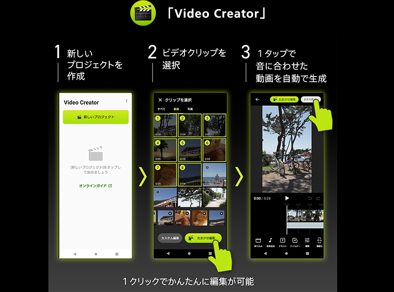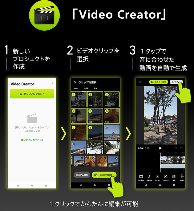 - Video Creatorアプリは対象機種にてGoogle Playストアでダウンロード可能(2023年9月25日時点)