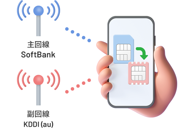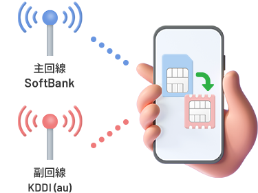 ソフトバンク回線が繋がらない状態でも、緊急呼を含む音声通話、SMS、データ通信がご利用いただけます。