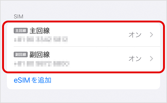 • 「eSIM クイック転送」または「Android eSIM転送」を利用して、主回線で使用しているSIMが切り替わった場合
