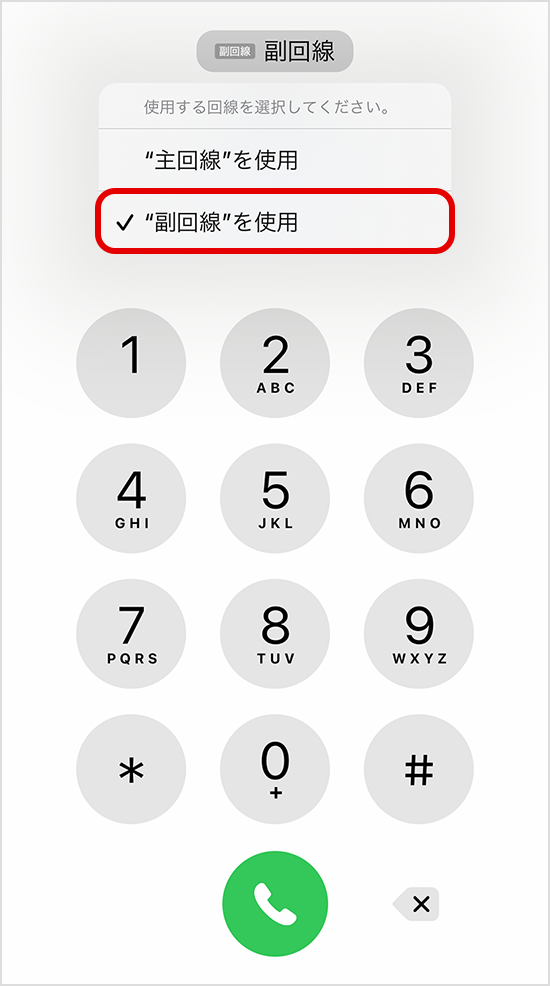 主回線とは違う電話番号になります。待ち受け状態の場合は、主回線、副回線ともに着信を受けることができます。