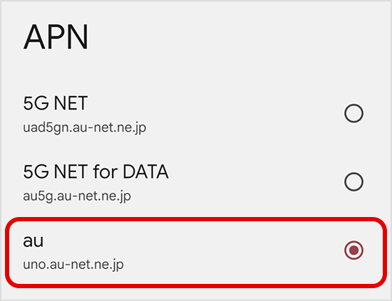 • 電波の種類選択にて「4G LTE」をご選択ください。