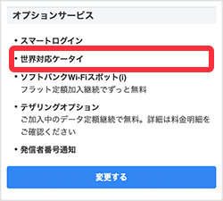 My SoftBankの「オプションサービス」欄で「世界対応ケータイ」をご確認ください。