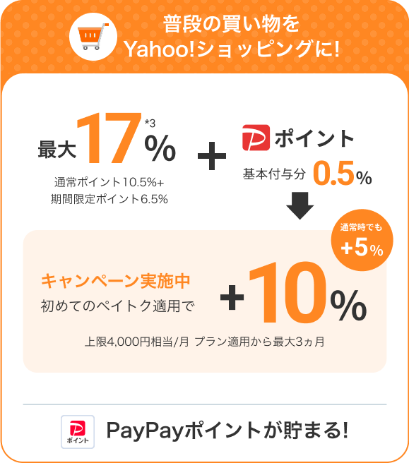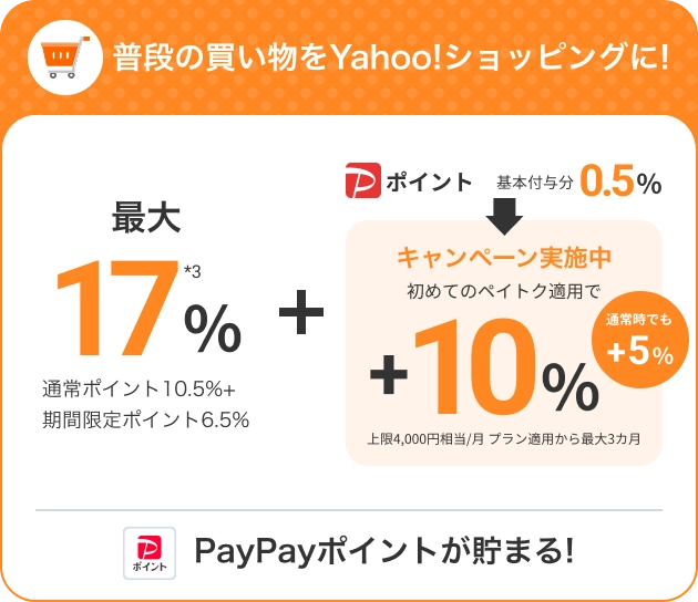 - 「PayPayクレジット」「PayPay残高」「PayPayポイント」以外のPayPayカード、PayPayカードゴールド、PayPay残高カードなどでのお支払いは対象外。