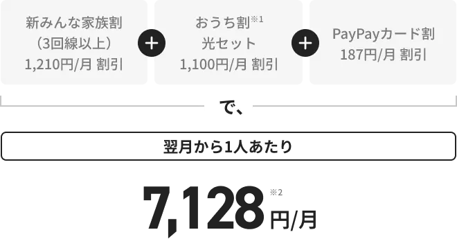 - 親1人につき同時に割引対象となるのは1回線まで。